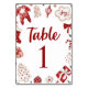 Tarjeta de número de tabla Baby Shower para Navidades de invierno rojos