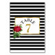 Tarjeta de número de tabla de rayas negras y blancas y rosas rojas y burdeos