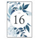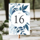 Las tarjetas botánicas de número de tabla de invierno de moda cuentan con un borde redondo de color azul hielo color agua, que rodea el número de la mesa. El diseño se repite al revés. Coordina con nuestro paquete de invitación a la boda de Wild Azure. NOTA: Por favor, personalizar con números de tabla uno por uno y añada al carrito individualmente.