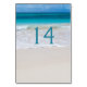 La moderna carta con el número de la mesa de la recepción de bodas con temática playera, con una fotografía de una playa de arena blanca y agua azul acuático. Personaliza el número azul acuático de cada mesa en la recepción. Hay productos que coinciden.