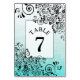 Boda de borde tribal de escritura elegante verde azulado y negro Tarjeta de número de tabla