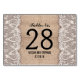 Hermoso y elegante fondo rústico de burlap y vintage tarjetas de boda de encaje blanco con número de mesa. Perfecto número de tabla rústico para boda de temas de campo.
