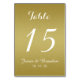 Elegante efecto Purpurina Shimmer Gold y guión blanco - Tarjetas de número de mesa Boda dorado. Elke Clarke© para MonogramGallery en Zazzle. Efecto fotográfico purpurina de oro impreso. Agregue su número de tabla y, a continuación, agregue un orden de "1" a su carrito. A continuación, repita añadiendo el número "2" a la tarjeta y, a continuación, agregue un orden de "1" a su carrito y repita hasta que tenga una tarjeta con cada uno de sus números de tabla en su carrito.