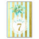 Tarjeta de número de tabla Boda rayado de flores doradas y azules