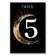 Tarjeta de número de tabla mística celestial en boda negro y oro