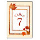 Tarjeta de número de tabla de Boda de otoño de hojas de otoño
