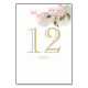 Flora de árbol de primavera rosada en la mesa número tarjeta con impresionantes flores de cerezo acuarela y follaje sabio. El texto dorado se puede cambiar a cualquier color. Edite y cambie cada número de tabla y añada al carrito individualmente para cada número de tabla necesario.