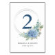 Mesa Tarjeta de número de tabla de hidrangea azul SINI