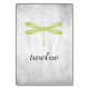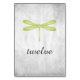 Elegante y simple tarjeta de mesa Boda con una libélula verde sobre un fondo gris. Este diseño es una elección única para un boda moderno. Fácil de personalizar con los números de tabla correspondientes. Haga clic en "Personalizar" para encontrar más opciones de personalización.