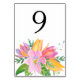Tarjeta de número de tabla de tulipanes rosados de color de agua