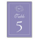 Tarjeta de número de tabla del Escudo Monograma de Lavender