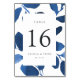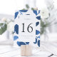 Las tarjetas botánicas de número de tabla de moda cuentan con un borde de color azul cobalto, enmarcando su número de tabla. Personalice con sus nombres y fecha de boda, o asigne un nombre a cada mesa para que tenga un toque personal adicional. El diseño se repite al revés. Se coordina con nuestra suite pressed Botanical de invitados en Indigo.