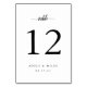 Sencillas y modas tarjetas de números de mesa en blanco y negro clásicos hacen una declaración elegante en la recepción de tu boda. Personalice con cada número de tabla, sus nombres y fecha de boda en letras negras clásicas con acentos de escritura caligráfica. El diseño se repite al revés. Coordina con nuestra suite de invitados a la boda de Ampersand y Monograma.