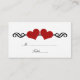 Tarjeta de la plaza Boda de los Corazones Elegantes, dulce y caprichosa, con un elegante borde giratorio adornado con un par de corazones rojos oscuros. Esta moderna tarjeta de acompañamiento es la elección perfecta para una moda y una boda elegante. Se proporciona espacio en este producto para escribir los nombres y números de la tabla donde cada uno de sus invitados estará sentado. Haga clic en "Personalizar" para buscar opciones de personalización adicionales.