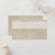 Sencilla y elegante tarjeta Rustic Lace Boda Place con un fondo de papel texturizado vintage y un borde de encaje dulce y delgado en blanco. Se proporciona espacio en este producto para escribir los nombres y números de la tabla donde cada uno de sus invitados estará sentado. Haga clic en el botón "Personalizar" para encontrar opciones de personalización adicionales.
