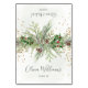 Esta elegante tarjeta personalizado presenta un diseño festivo de vegetación invernal, ideal para añadir un toque de belleza natural a sus vacaciones o eventos de temporada. El ilustracion de acuarela, decorado con ramas de abetos exuberantes, delicadas agujas de pino, pinecones rústicos y bayas rojas vibrantes, crea un ambiente cálido y acogedor. El diseño se complementa con una sofisticada tipografía de guiones para nombres de invitados y detalles de eventos, todo ello contra un fondo suave y sutilmente texturado con toques de purpurina dorado.