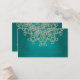 Una hermosa joya de color verde azulado turquesa azul turquesa y boda dorado de chaqueta azul turquesa, o cualquier tarjeta especial para la ocasión con un sari ornamental de inspiración india exótica, con un diseño de loto y quemaduras de sol florales. Esta elegante y hermosa y moderna y lujosa tarjeta estilo indio es perfecta para cualquier ocasión formal con una temática de aladdin o noches marroquíes indonesias de asia oriental. Diseño © Chrissy H. Studios, LLC. Todos Los Derechos Reservados.