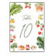 Fresco en el mercado numero de mesas de ducha de novia con frutas y verduras rústicas, perfecto para celebraciones de granja a mesa, jardín o relacionadas con el mercado de los agricultores
