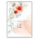 Número de tabla de boda | Caligrafía moderna con flores coralinas escarlatas de llama audaces y bellas y temática de acuarela de color verde pálido. Esta es parte de una completa suite de estilo Boda con boda, ducha de bebé y otros artículos de papelería para eventos - arte personalizado © de WhimsicalArtwork™.