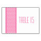 Tarjeta de número de tabla de borde de moda y moderna Chevron con un sencillo borde de patrón de chevron en magenta y blanco. Este diseño elegante marcará el tono de una boda elegante. Fácil de personalizar, simplemente agregue los números de tabla apropiados en el campo de texto proporcionado. Haga clic en "Personalizar" para encontrar más opciones de personalización.
