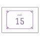 Tarjeta de número de mesa de Moda Deco sencilla y minimalista con un moderno borde decorativo de arte violeta. Esta carta clásica y elegante es fácil de personalizar con los detalles de su boda. Para obtener más opciones de personalización, haga clic en Personalizar.