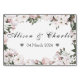 Guíe a sus huéspedes con elegancia y encanto con esta tarjeta boda personalizada. Con un hermoso borde de ilustraciones florales en blanco y rosa suave, esta tarjeta destaca los nombres de la pareja feliz, "Alison & Charlie", y su fecha especial, "04 de marzo de 2024," en un guión clásico. Perfecto para añadir un toque personalizado a las mesas de la recepción nupcial o como detalle de moda para una ducha nupcial o celebración del aniversario.