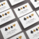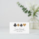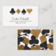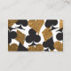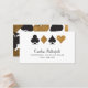 Los trajes de cartas en negro y oro purpurina de imitación lucen nítidos en esta tarjeta de visita blanca ideal para jugadores profesionales de cartas, empleados de casino y fans del brillo y el glamour de la vida nocturna de Las Vegas. El patrón de respaldo se puede quitar para agregar más información o una foto haciendo clic en el enlace posterior del personalizar debajo del texto de la plantilla.