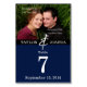 La moderna colección de líneas bodas presenta una moda y un estilo simplista. La parte delantera de la tarjeta de la tabla incluye un espacio de plantilla de fotos centrado en la parte superior para que pueda personalizar su tarjeta de tabla con su propia foto. Debajo de la foto hay una banda negra con el símbolo "&" parado audazmente en el centro. Esta versión de la tarjeta de mesa boda de líneas modernas presenta un fondo azul marino oscuro, pero puede cambiarse a cualquier color que desee utilizando la función "personalizar it". La parte posterior de la tarjeta presenta las mismas características de diseño de moda que la parte frontal.Utilice la plantilla de redacción personalizado para agregar sus nombres a cualquiera de las bandas negras. Utilice las plantillas de texto de personalizado adicionales para personalizar sus tarjetas de tabla con todo su propio texto.