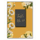 Esta tarjeta de mesa boda viene en diferentes tamaños, formas y papeles. En él se mezcla armoniosamente flores de margaret retro con elementos elegantes, con un toque de encanto de las flores silvestres y una mezcla de fondo de albaricoque naranja acuático. La superposición mínima de ónice negra con un aspecto tridimensional es para su personalización como su número de tabla. El reverso de la invitación a la boda tiene el mismo aspecto, pero en el superpuesto negro de ónice hay un ilustracion de un rosa y un espacio para tus Monogramas. Creado para su boda Hobinshop.