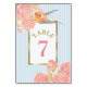 Tarjeta de número de tabla de Boda de pájaro azul y rosa y blanco floral