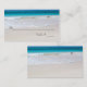 Bonitas tarjetas de recepción de bodas con temática playera, con una fotografía de una playa de arena blanca y agua azul clara. El texto en castaño se puede personalizar para leer lo que se desea. Escribir a mano el nombre y el número de tabla de cada invitado en las tarjetas.