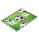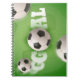 Balones de fútbol (fútboles) en el movimiento en un fondo verde con las letras blancas "META".