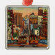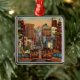 Gran imagen colorida de tarjeta postal antigua de San Francisco que muestra los icónicos tranvías, el puente Golden Gate y el barrio chino, reutilizada en un adorno de cerámica.