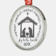Simple y atemporal, este adorno de la natividad en negro y blanco captura la belleza tranquila de la noche de Navidad. La silueta minimalista de María, José y el niño Jesús se sienta debajo de una estrella brillante, enmarcada con una suave corona botánica y año personalizable. Un regalo reflexivo para familias llenas de fe, amigos de la iglesia o intercambios de adornos.