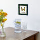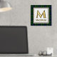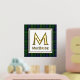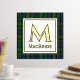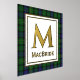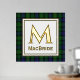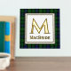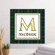 Impresión de Relieve metalizado trenzado escocés verde, con un Relieve metalizado dorado enmarcado en área de texto, contra el fondo del patrón tartán del clan escocés MacBride. Un monograma grande de una sola letra y un nombre de Relieve metalizado dorado están listos para personalizar.