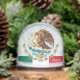Patriotic Mexico Snow Globe featuring frosty snowflakes background falling behind the Mexican Eagle emblem (blue sky glimmer on the back) & Mexican Flag, winter Christmas decoration, holiday gifts for patriots / sports fans.