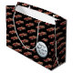 Para los amantes clásicos de los autos y Corvettes, aquí hay un patrón divertido. Este patrón Corvette de 1957 es un gran diseño para cualquier ocasión. Mostrado aquí con un fondo negro, se puede personalizar esta bolsa cambiando el color. En la esquina inferior derecha hay un círculo de color plateado que se puede personalizar con el texto.