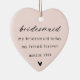 Celebra a tu dama de honor y a tu mejor amiga con este hermoso adorno navideño, un placer perfecto para honrar su rol especial en tu boda. Con un mensaje sincero y un diseño elegante, es una manera cuidadosa de mostrar su aprecio durante la temporada de fiestas. Personalízalo con su nombre y fecha boda para crear un recuerdo duradero que apreciará año tras año.