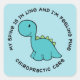Estos pegatinas quiroprácticos presentan un adorable dinosaurio azul con un texto circular que dice "Mi columna está en línea y me siento bien - Cuidados quiroprácticos".