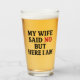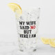 Alza un brindis con un toque de humor. Este vaso presenta la frase estrafalaria "Mi esposa dijo no pero aquí estoy", perfecta para cualquiera con un divertido sentido del humor. Es ideal para disfrutar de sus bebidas favoritas, ya sea una cerveza fría o un refresco clásico. Grandioso como regalo de broma, regalo de cumpleaños, o sólo para reírse en casa, este vaso está garantizado para iniciar conversaciones y traer sonrisas. ¡Muestra tu lado malicioso, un sorbo a la vez!