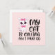 ¡Responde a la llamada del amor felino con esta tarjeta de saludo 'Mi gato llama y debo irme'! Con un elegante gato blanco adornado con una suave cinta rosada, esta encantadora obra de arte es perfecta para los amantes de los gatos que conocen el innegable tirón de sus queridos mascotas. Un regalo delicioso para los amantes de los gatos, este diseño añade un toque de sofisticación y humor a su día.