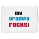 Camisetas, tarjetas, pegatinas, bolsas de té, imanes, botones y otros artículos de mi Grampa Rocks con un diseño de texto negro, azul y rojo. Estos artículos de My Grampa Rocks son una buena manera de mostrar tu amor por tu grampa especial!