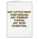 Tarjeta hecha para la seño en fin de curso, ha quedado estupenda. Dudé si escoger la mate o la de brillo, y creo que acerté con la mate, pues la foto no era muy buena
