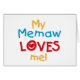 Mi memaw me ama camisetas, pantalones de vestir, tarjetas, pegatinas, bolsos de té, imanes, pegatinas y otros artículos de Memaw Me ama vestido y regalos con un diseño de texto azul, rojo y amarillo.