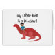 Un muchacho afroamericano consigue un paseo en un dinosaurio rojo y el texto lee "mi otro paseo es un dinosaurio!" ¡en las camisetas del dinosaurio, los monos, los bolsos, las tarjetas, los pegatinas, los imanes, los llaveros, las almohadas, los relojes de pared, y más!