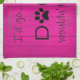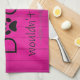 La toalla de cocina perfecta para los que prefieren la compañía de perros y la comodidad de casa. La toalla de cocina de My Dog no permitía que la toalla de cocina mostrara un texto que dijera "Me iría...pero mi perro no lo permitiría", con una huella de pata y adornos de silueta de perro contra un fondo de madera magenta. También hay artículos de regalo adicionales disponibles con este diseño.
