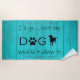 La toalla de playa de My Dog no permitía que se mostrara el texto que decía "Me iría...pero mi perro no lo permitiría", con una huella de pata y un adorno de silueta de perro contra un fondo de madera verde azulado. También hay artículos de regalo adicionales disponibles con este diseño.