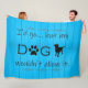 Manténgase acogedor en las noches de otoño con un My Dog no le permitiría entrar en la manta. El diseño de una manta incluye un texto que dice "Me iría...pero mi perro no lo permitiría", con una huella de pata y un adorno de silueta de perro en un fondo azul de madera. También hay artículos de regalo adicionales disponibles con este diseño.