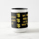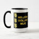 Taza con una afirmación positiva: "MILLÓN de TAZAS del DÓLAR - MI PRIMER MILLÓN ESTÁ EN SU MANERA A MÍ" en la escritura del oro con las muestras de dólar de oro en un fondo negro. Utilice esta taza cada día para reprogramar su mente subconsciente con una actitud de la expectativa para manifestar últimos éxito y riqueza. Su también el regalo perfecto para los amigos, familia o compañeros de trabajo como emprenden un proyecto especial con el objetivo de llegar a ser financieramente acertados.