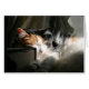 Gato de Calico dormido frente a un libro en un rayo de sol desde la tarjeta de la foto de la ventana